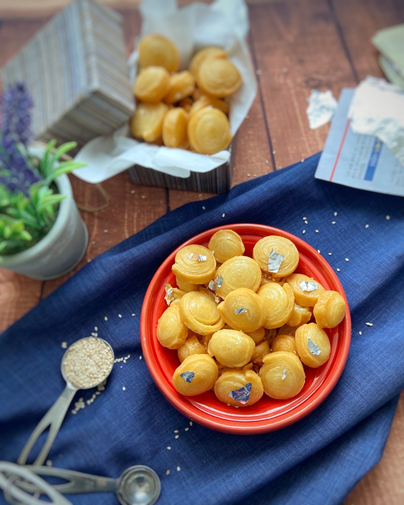 Shaker Paray also known as Khurma, are little pieces of rolled dough fried in oil till golden and glazed in a sugar syrup. If you love Balushahi (Pakistani Sweet), you will also love these buttery, flaky, golden fried biscuits as the ingredients and method for both Balushahi and Shakar Paray are almost identical.