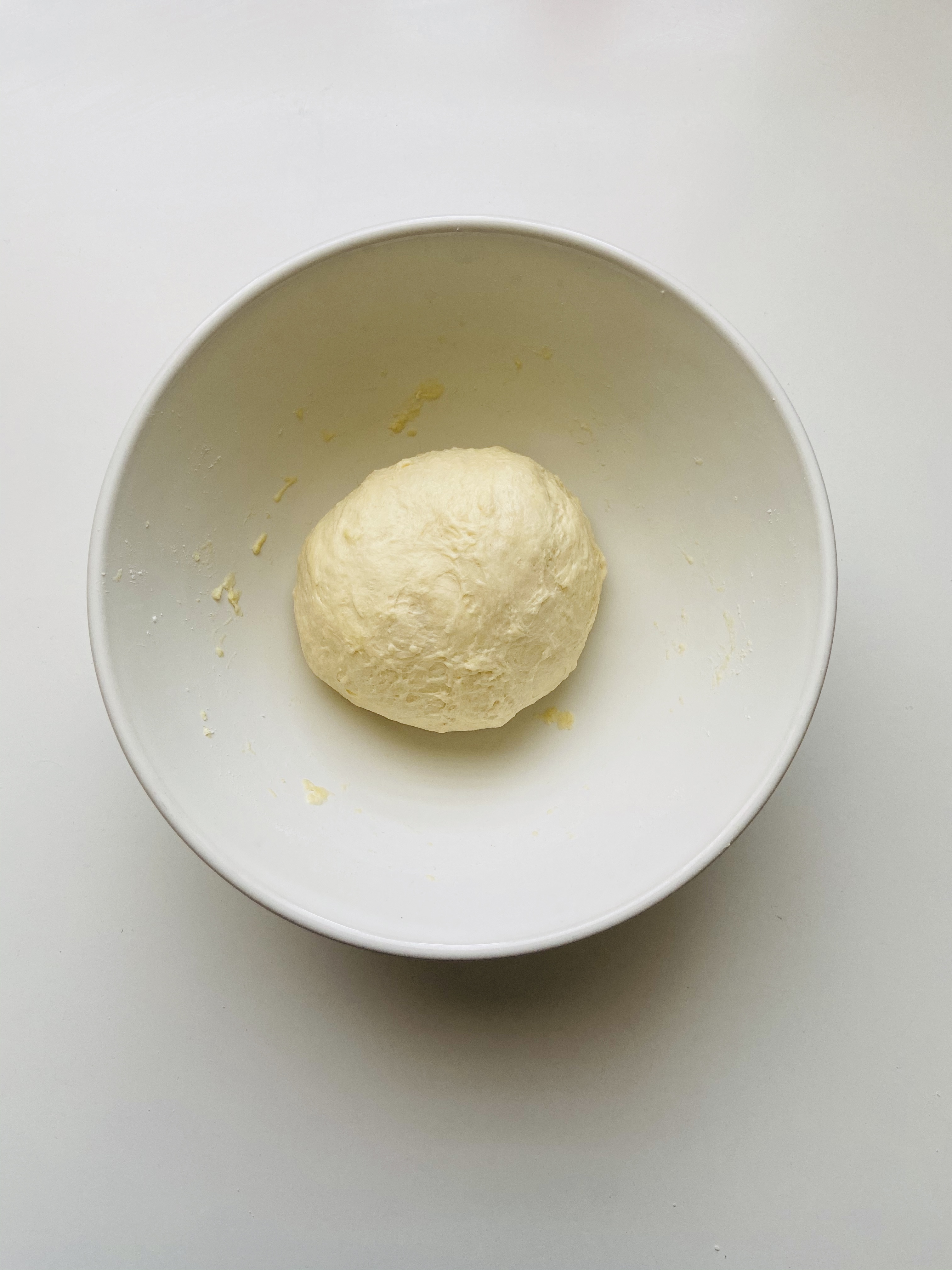 In a bowl combine ghee, salt, yogurt, baking powder and flour. Using your fingers crumble ghee into flour until all the ingredients are well incorporated. Gradually add water and knead flour into a soft dough. Allow the dough to rest for 15 minutes.