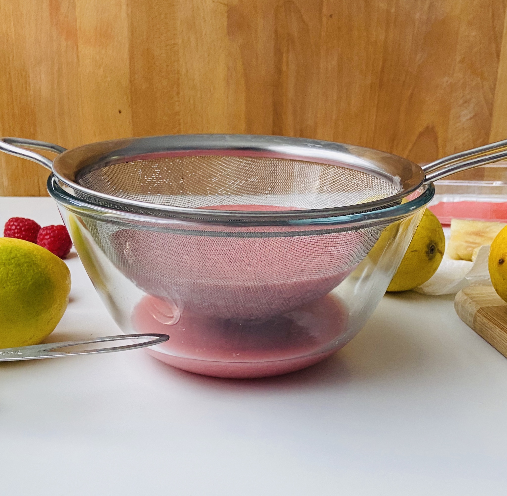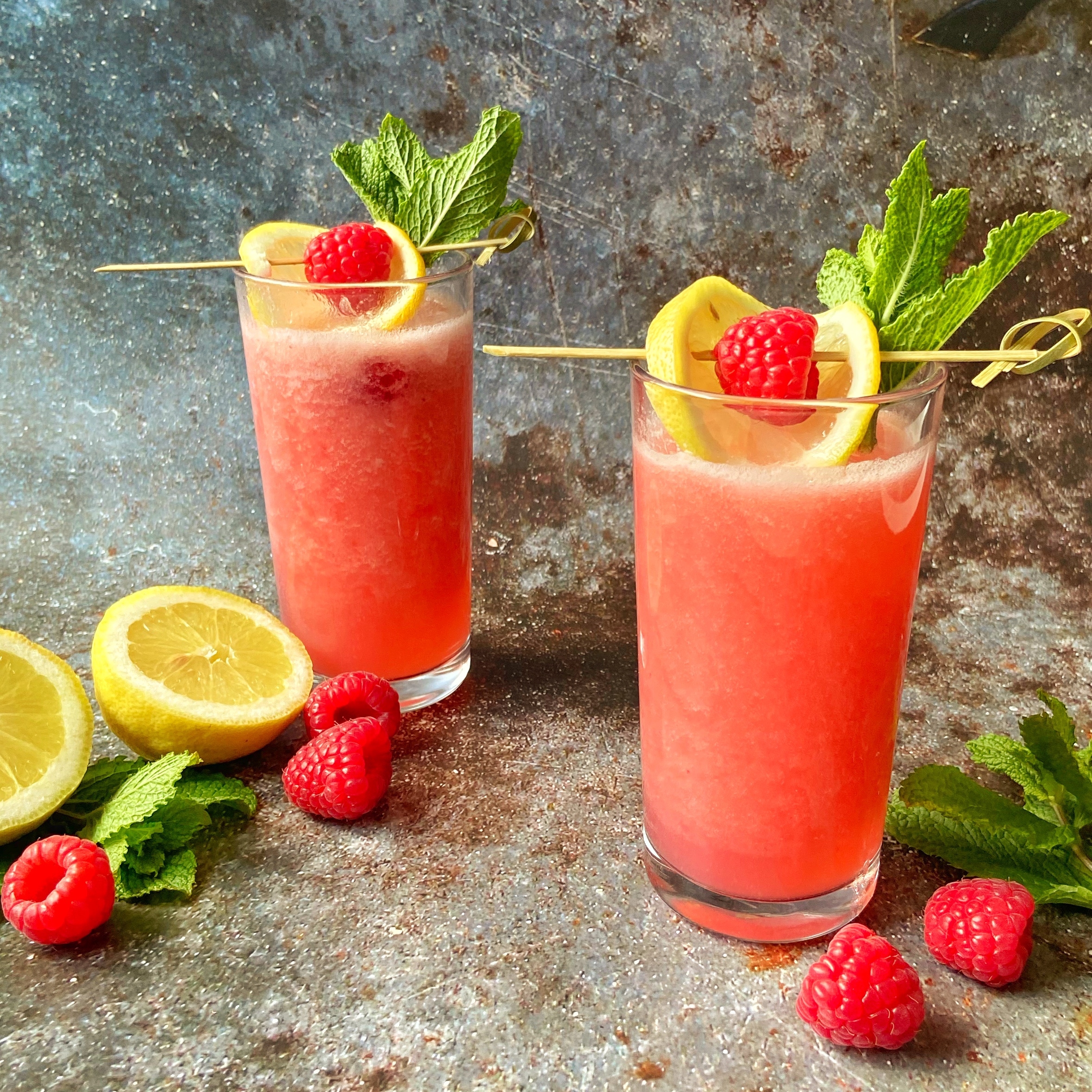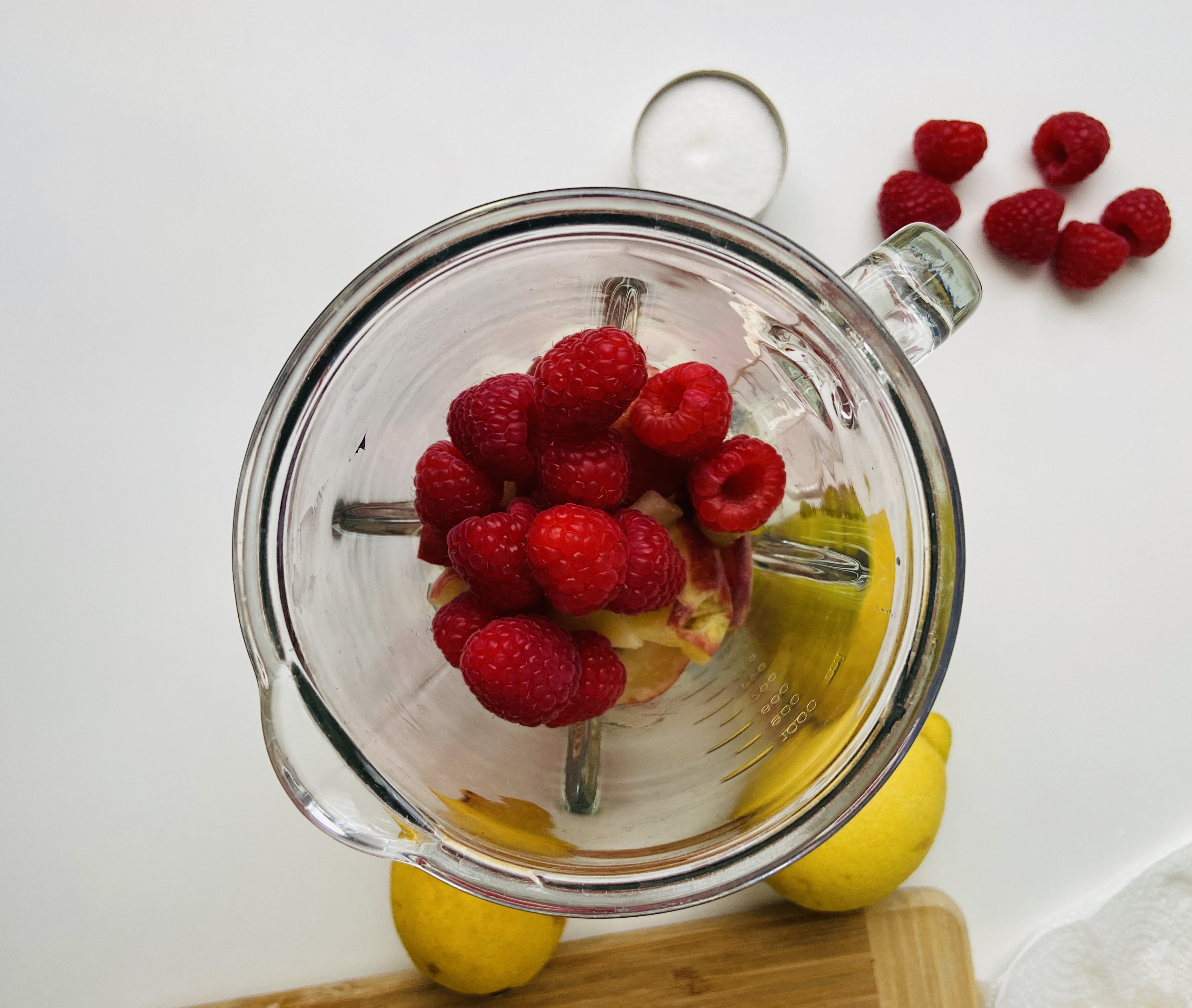 - Peach Raspberry lemonade is easy to whip up. You start by pureeing and straining the peach and raspberries.