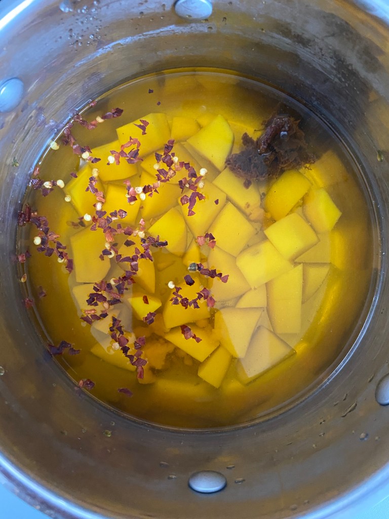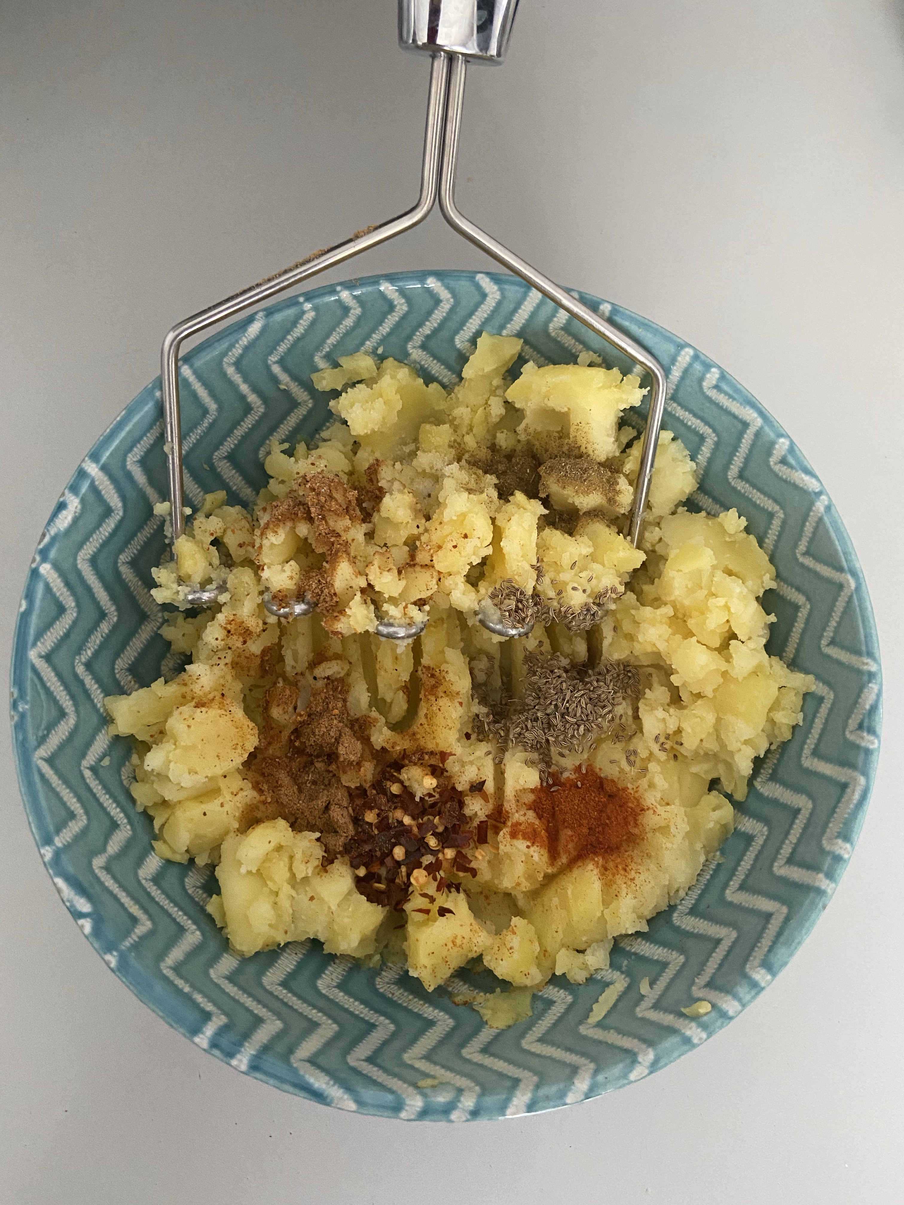 To make the potato chutney peel and cut potato into small cubes. Add everything into a pot and boil until potatoes are soft. Blend potatoes into a smooth paste. If the mixture is too thick add some water. If it is too runny continue to cook after blending until chutney reaches a sauce like consistency.
