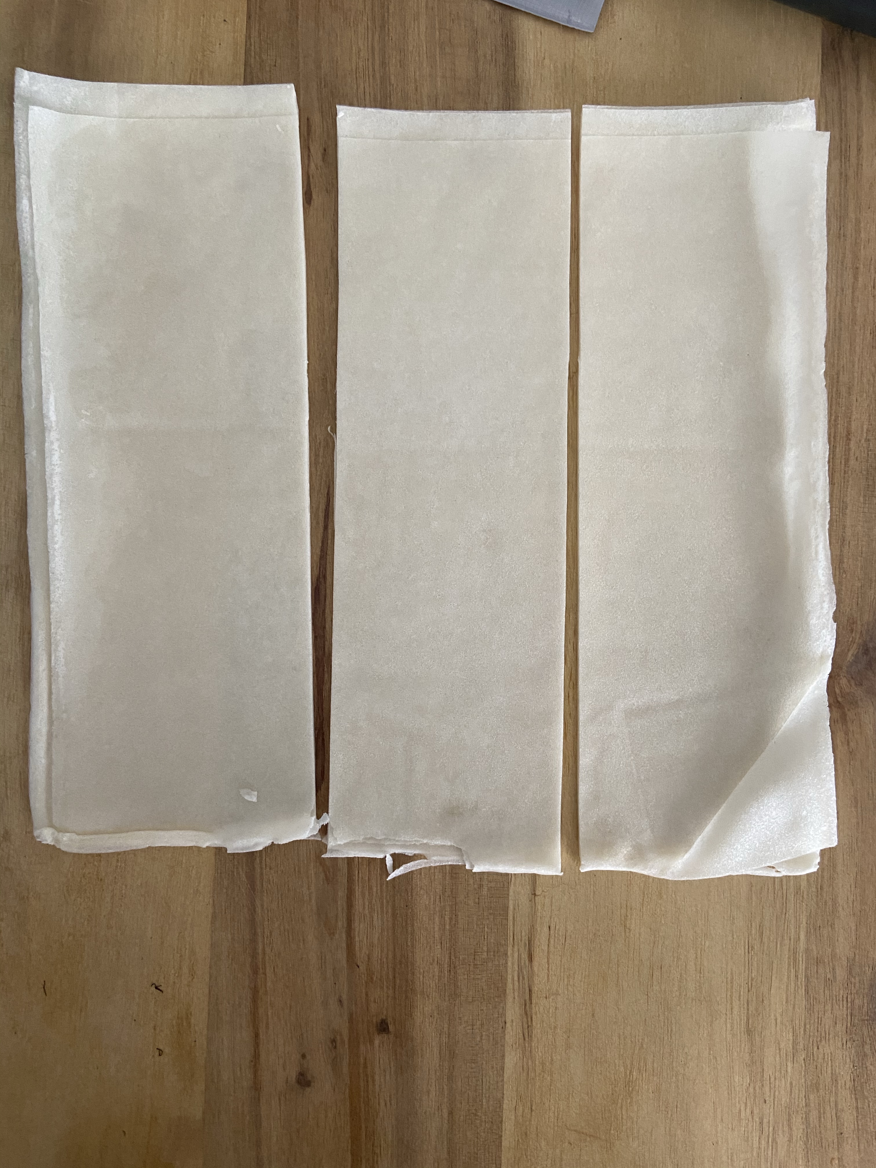 - Spring Roll or Samosa Wrappers (2” x 8”)