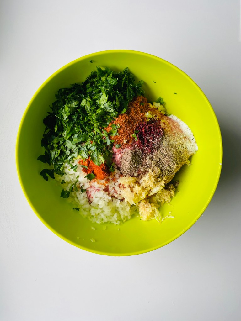 Lebanese Kafta Kebab are made with minced beef and lamb with parsley, onions, and a staple Lebanese spice blend ‘7 Spice Mix’. You can easily find 7 Spice Mix at your local Middle Eastern store or Super Market. Even if you do not scroll down to my Hummus with Spiced Beef recipe for a homemade 7 Spice Mix recipe.